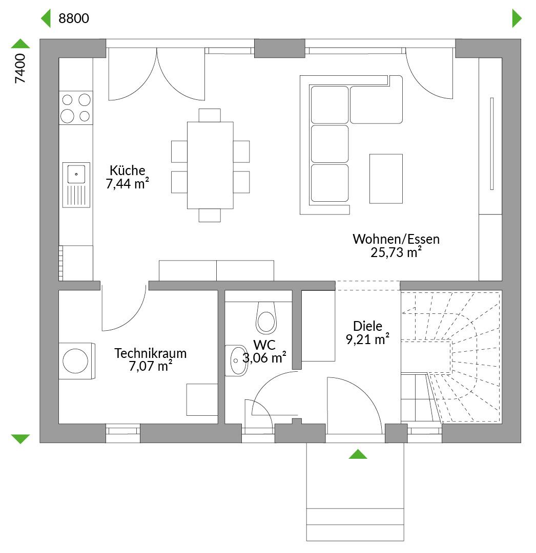 • Elektropaket - Steckdosen und Lichtschalter, Deckenlichtanschlüsse innen und außen, Netzwerkanschlüsse und TV-Anschlüsse, Anschlüsse für Küchen- und Haushaltsgeräte