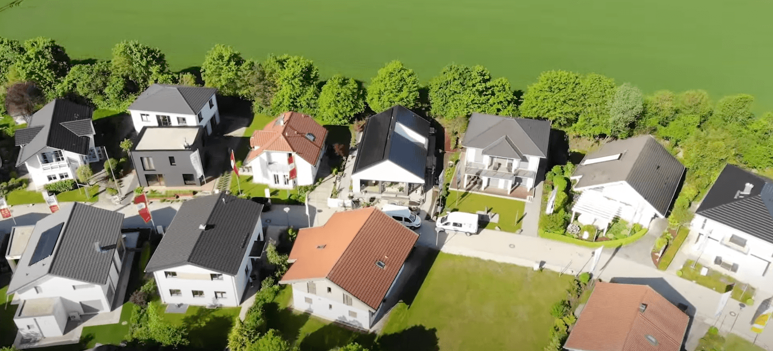 Auf dem Dach erzeugen flach integrierte PV-Elemente umweltfreundlichen Strom für die Wärmepumpe und dezente Infrarotpaneele. In Kombination mit Wohnraumlüftung mit Wärmerückgewinnung und exzellenter Dämmung erfüllt das Haus den Standard Effizienzhaus 40 Plus – für nachhaltiges Wohnen mit Zukunft.
